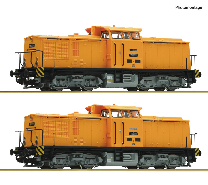 Roco 7390011 2-tlg Set: Diesellokomotiven 111 018-8 und 111 019-6, DRLokomotiv-Set mit den Diesellokomotiven 111 018 und 111 019 der Deutschen Reichsbahn. ? Auslieferungszustand 1982 ? Beide Lokomotiven vollwertig ausgestattet ? Beheimatung Bw Rostock ? Freistehende, filigrane Griffstangen ? Im Digitalbetrieb mit schaltbarem Rangierlicht (beidseitig 3x weiß) und einzeln schaltbarem Spitzen- oder Schlusslicht Um den Bedarf an schweren Rangierlokomotiven zu decken, bestellte die DR Ende der 1970er Jahre 37 Maschinen bei LEW Henningsdorf, die solche Loks schon für den Export entwickelt hatte. Die von 1981 bis 1983 in drei Baulosen hergestellten Lokomotiven hatten den bewährten 1.000 PS Motor, jedoch ein Getriebe mit geänderter Übersetzung, ähnlich den ersten V 100-Lokomotiven. Die Höchstgeschwindigkeit betrug daher nur 65 km/h. Anstelle des Heizkessels wurde ein Ballastgewicht eingebaut. Wie alle DR-Rangierlokomotiven, hatten diese Loks einen orange-gelben Anstrich. Zur Sicherheit des Rangierpersonals während der Fahrt, wurden Geländer an den Vorbauten dieser Loks angebaut.vorraussichtlicher Liefertermin: Q2/2025